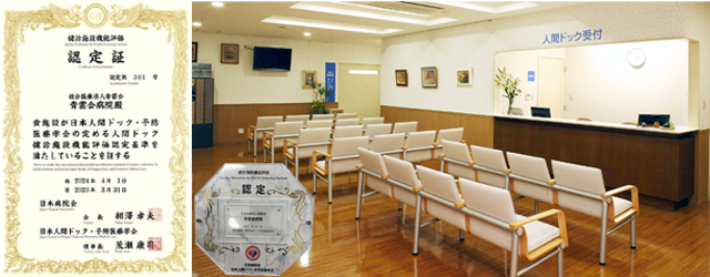 青雲会病院では、最新の診断機器が完備され、卓越した診断技術により、短時間で簡単に、より精度の高い検査が受けられるようになりました。その結果、青雲病院の人間ドック室は平成25年2月に「人間ドック健診施設機能評価」の認定を受けました。鹿児島県で3番目の立派な人間ドック学会認定施設です。