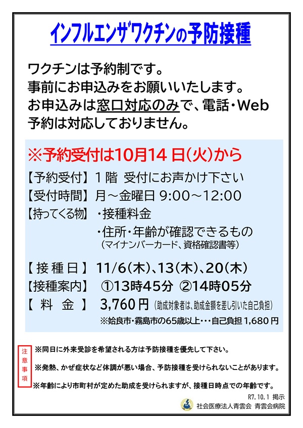 インフルエンザワクチンの予防接種について