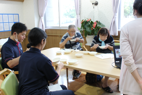 また、講話の中では嚥下機能の低下した方に向けた食事を実際に召し上がって