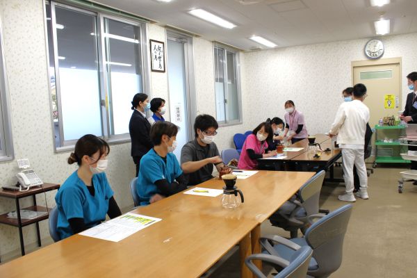 参加された他事業所の職員の方にも体験していただき、参加者全員で一緒に淹れた