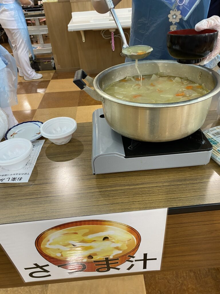 職員が気合いをいれて、がね、おにぎり、さつま汁などを準備させていただきました!