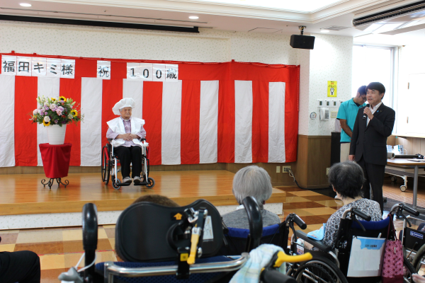 姶良市長からご挨拶をいただいたり、施設長や、一足先に100歳になられていた