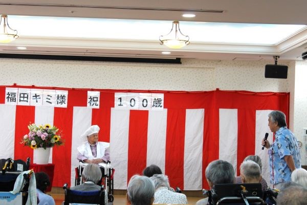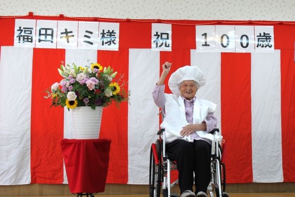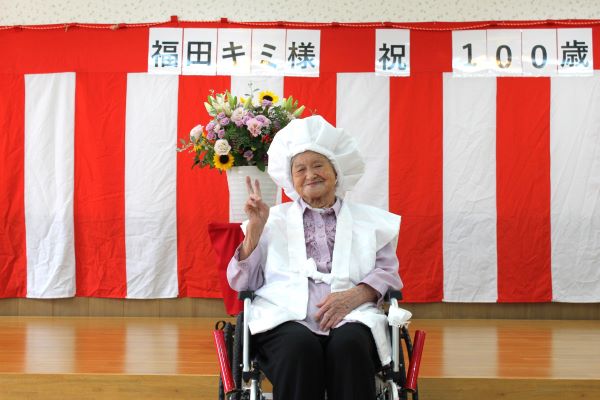 入所されている福田キミさんが100歳を迎えられるということで、みんなでお祝いをしましたよ!