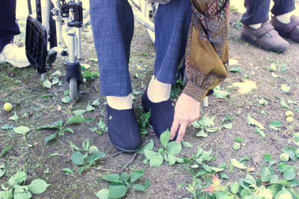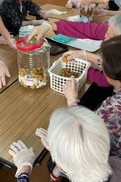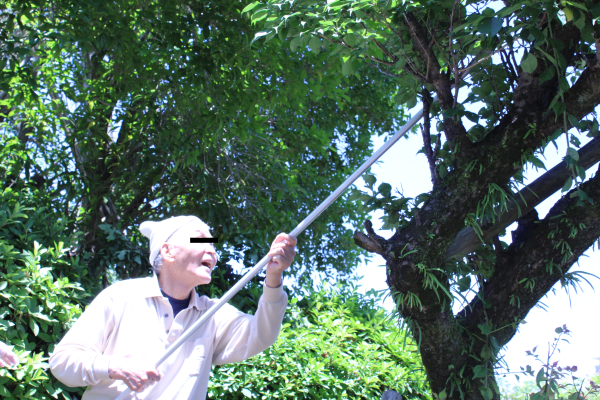 梅の実を落とす職人さん…ではなく入所者さんですw